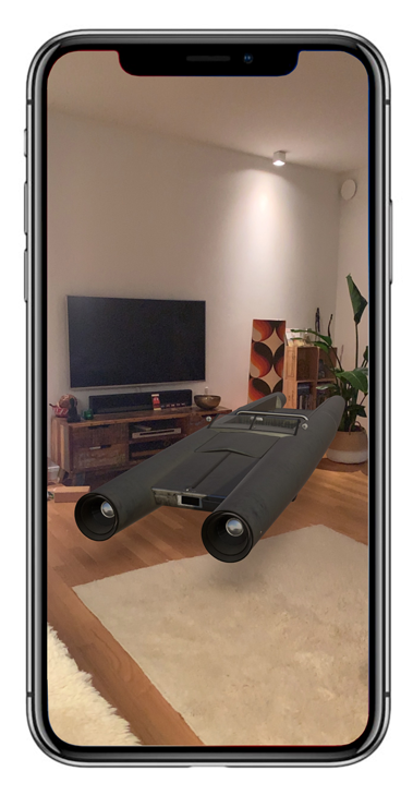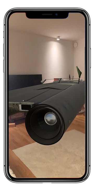 Click the button and enjoy the AR (Augmented Reality) “flyover” of the rocket car right in your own living room.